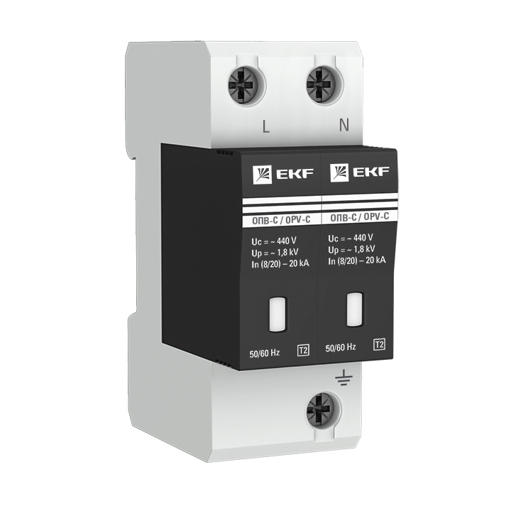 • Ограничитель перенапряжения (УЗИП / OVR) ОПС1-C KARAT, 2 полюса, Класс 2, 20 кА, 40 кА