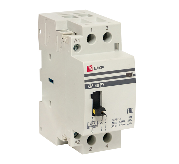 Контактор модульный КМ РУ 63А 2NO (2 мод,) EKF PROxima PROxima, 2НО, 63А, 220В AC