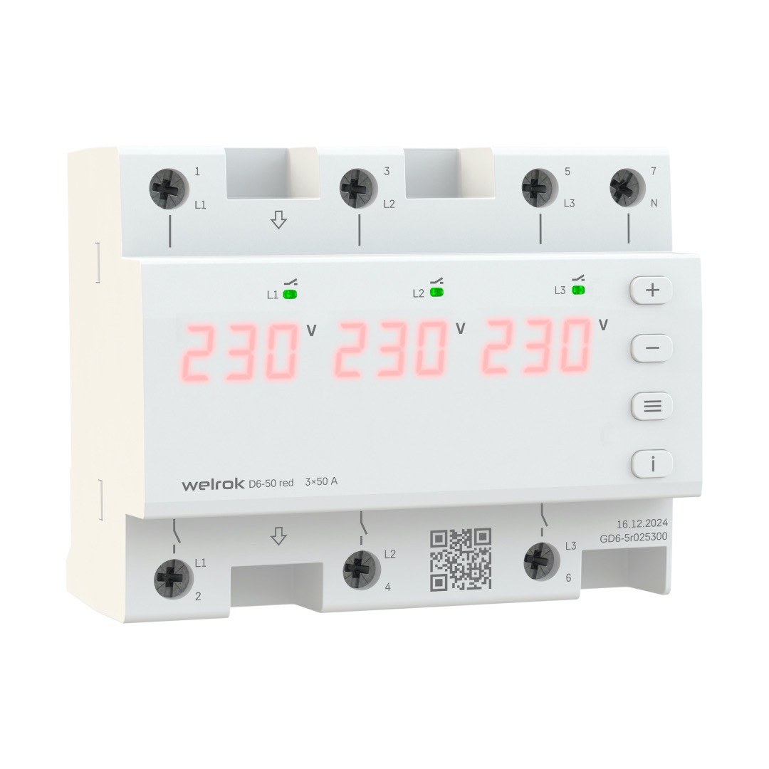 • Реле напряжения с контролем тока 1P+N KARAT, 1НО, 50А, 220В AC