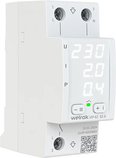 Многофункциональное реле напряжения с контролем тока 1P+N Relay welrok, 1НО, 63А, 220В AC