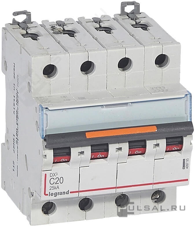 Автоматический выключатель DX³, 4 полюса, 20А, C, 25 кА