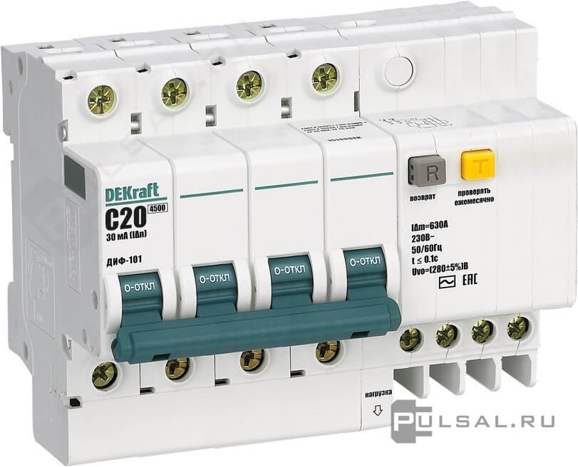 Автомат дифференциального тока ДИФ-101 ДИФ-101, 3+N полюса, 20А, C, 4,5 кА, тип - AC,