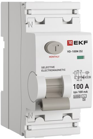 Выключатель дифференциального тока ВД-100N PROxima, 2 полюса, 100А, тип - AC-S, 100 мА