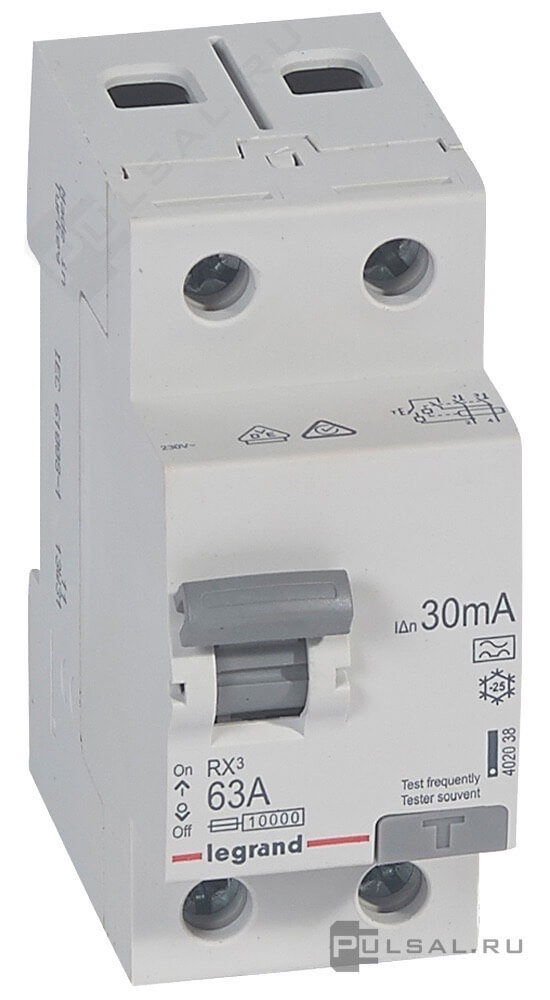 • Выключатель дифференциального тока (УЗО) RX³, 2 полюса, 63А, тип - AC, 30 мА