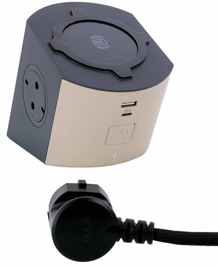 • Розеточный блок 3-местный + 2 USB type-A + 1 USB type-C + беспроводная зарядка, цвет -  белый