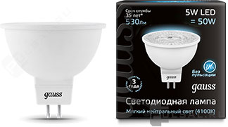 Basic, цоколь - GU5.3, мощность - 9Вт, световой поток - 830Лм, цветовая температура - 4100К, не диммируется, 101505209, Gauss