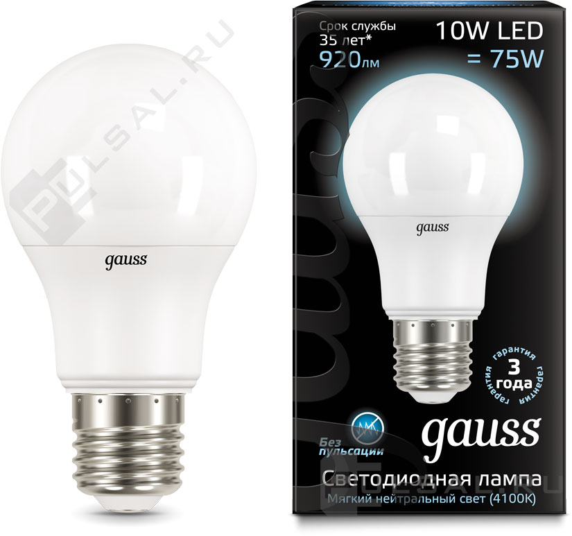 Лампа светодиодная Black, цоколь - E27, мощность - 10Вт, световой поток - 920Лм, цветовая температура - 4100К, диммирование шаговое, 102502210-S, Gauss