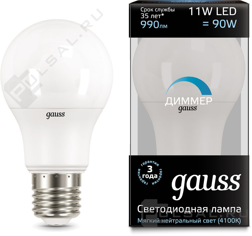 Лампа светодиодная Black, цоколь - E27, мощность - 11Вт, световой поток - 990Лм, цветовая температура - 4100К, диммируется, 102502211-D, Gauss