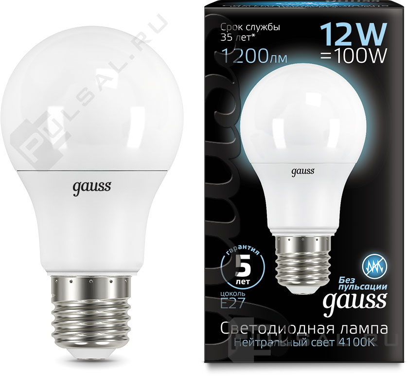 Elementary, цоколь - E27, мощность - 12Вт, световой поток - 1150Лм, цветовая температура - 4100К, не диммируется, 23222, Gauss