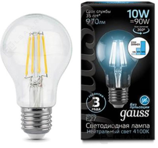 Лампа светодиодная Black, цоколь - E27, мощность - 10Вт, световой поток - 920Лм, цветовая температура - 4100К, диммирование шаговое, 102502210-S, Gauss