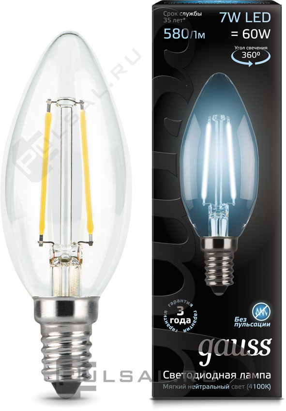 Black, цоколь - E14, мощность - 7Вт, световой поток - 590Лм, цветовая температура - 4100К, диммируется, 103101207-D, Gauss