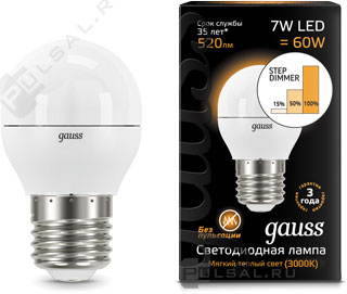 Лампа светодиодная Black, цоколь - E27, мощность - 7Вт, световой поток - 520Лм, цветовая температура - 3000К, диммирование шаговое, 105102107-S, Gauss