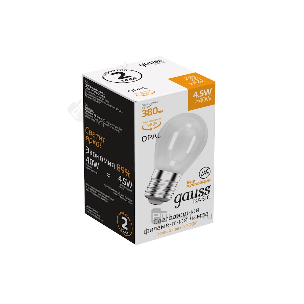 Black, цоколь - E27, мощность - 6.5Вт, световой поток - 520Лм, цветовая температура - 2700Кцветовая температура - 3000К, не диммируется, 103102107, Gauss