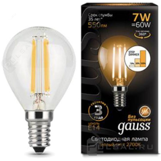 Black, цоколь - E14, мощность - 5Вт, световой поток - 420Лм, цветовая температура - 2700К, не диммируемая, 103801105P, Gauss