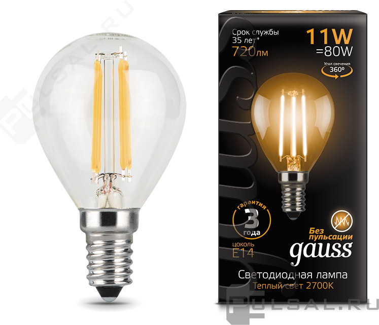 Black, цоколь - E14, мощность - 11Вт, световой поток - 720Лм, цветовая температура - 2700К, не диммируется, 104801111, Gauss