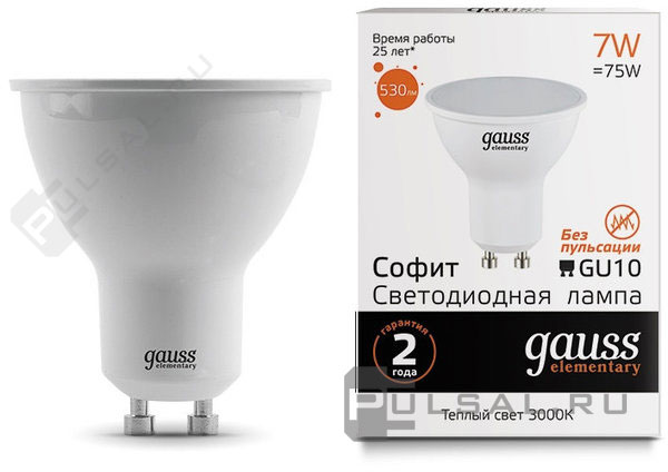Elementary, цоколь - GU10, мощность - 5.5Вт, световой поток - 430Лм, цветовая температура - 2700Кцветовая температура - 3000К, не диммируется, 13616, Gauss