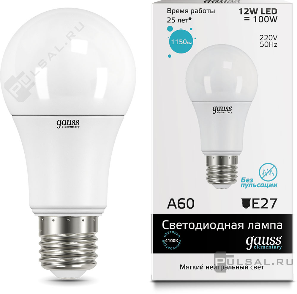 Elementary, цоколь - E27, мощность - 8Вт, световой поток - 540Лм, цветовая температура - 4100К, не диммируется, 53228, Gauss