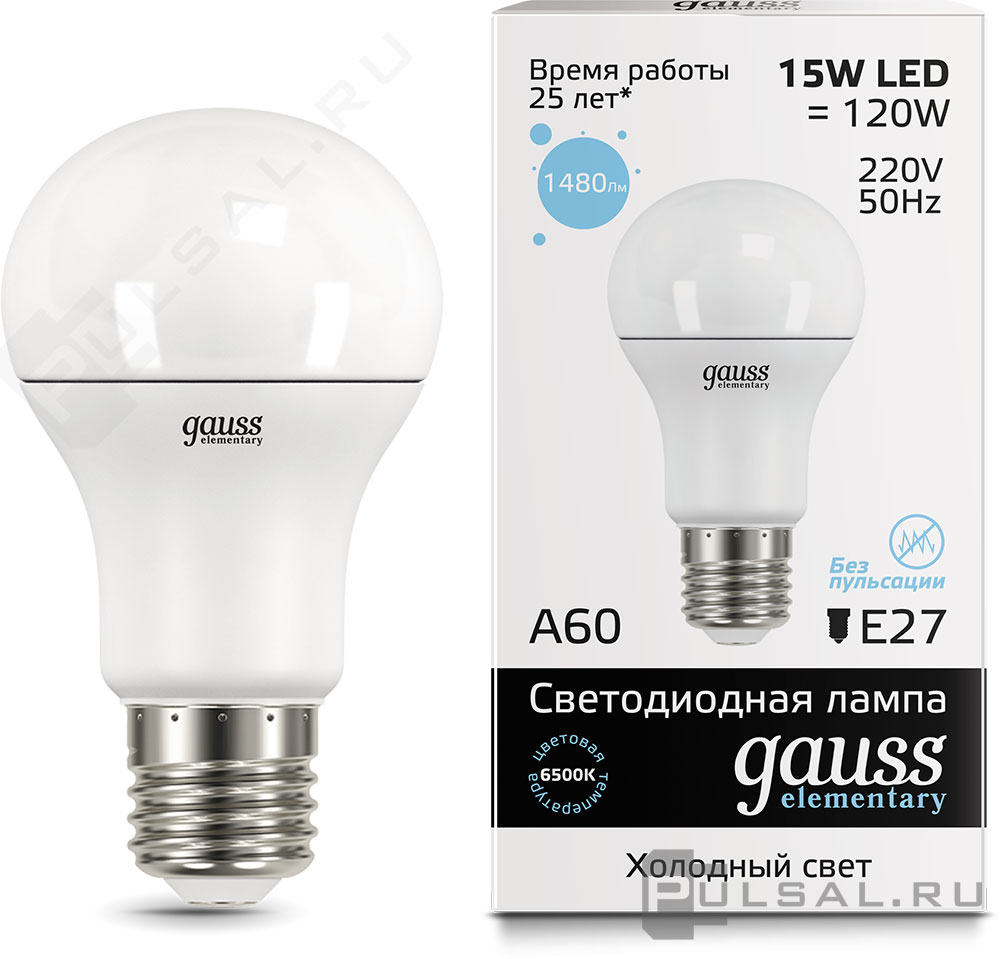 Elementary, цоколь - E27, мощность - 25Вт, световой поток - 2150Лм, цветовая температура - 6500К, не диммируется, 73235, Gauss
