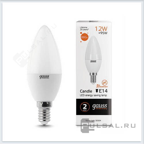 Elementary, цоколь - E14, мощность - 12Вт, световой поток - 880Лм, цветовая температура - 3000К, не диммируется, 53112, Gauss