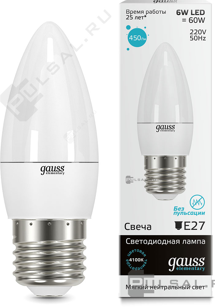 Elementary, цоколь - E27, мощность - 8Вт, световой поток - 540Лм, цветовая температура - 4100К, не диммируется, 53228, Gauss