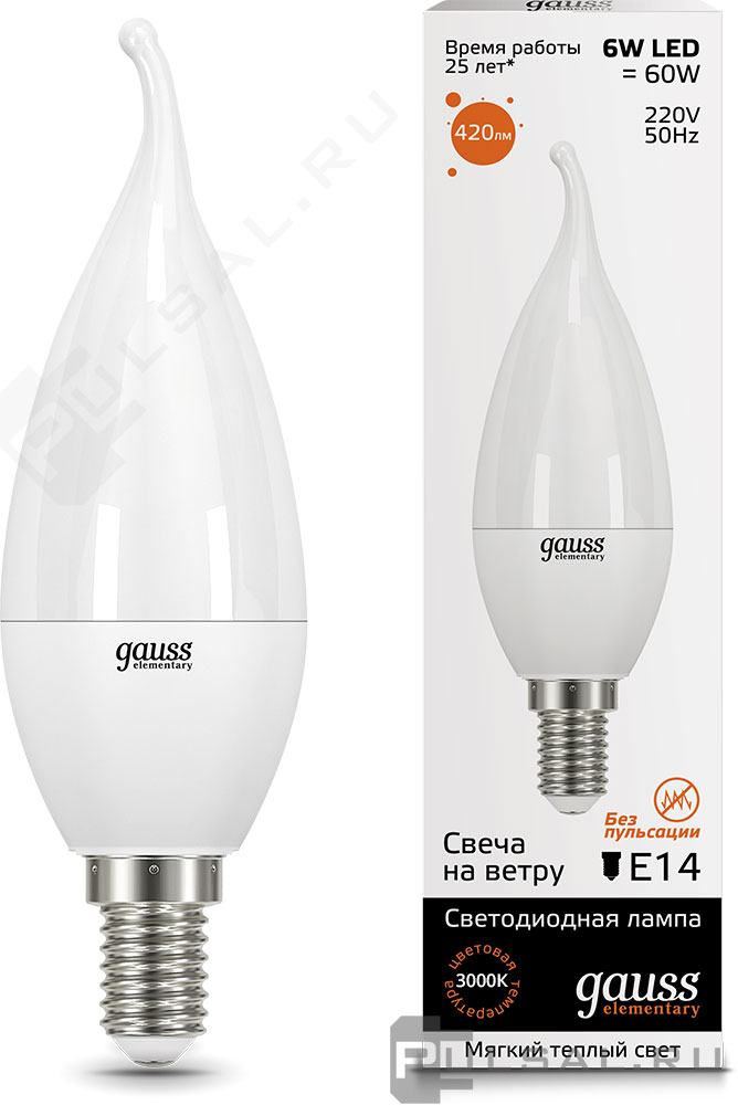 Elementary, цоколь - E14, мощность - 8Вт, световой поток - 520Лм, цветовая температура - 3000К, не диммируется, 33118, Gauss