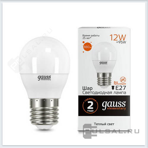 Elementary, цоколь - E27, мощность - 12Вт, световой поток - 1130Лм, цветовая температура - 3000К, не диммируется, 23212, Gauss