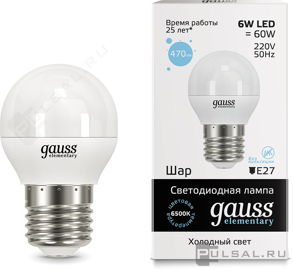 Elementary, цоколь - E27, мощность - 25Вт, световой поток - 2150Лм, цветовая температура - 6500К, не диммируется, 73235, Gauss