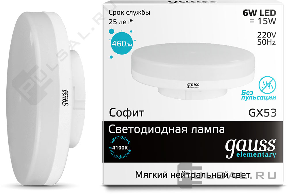 Elementary, цоколь - GX53, мощность - 21Вт, световой поток - 2000Лм, цветовая температура - 4100К, не диммируется, 83822, Gauss