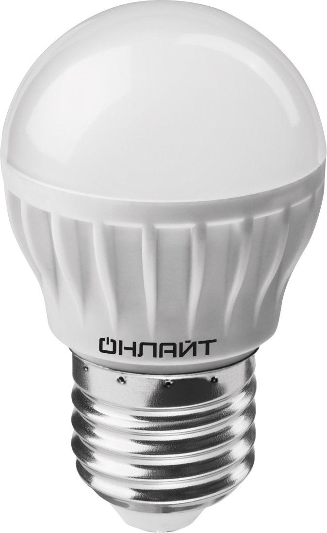 Лампа ОНЛАЙТ 61 138 OLL-G45-6-230-6.5K-E27 светодиодная Лампы ОНЛАЙТ, цоколь - E27, мощность - 6Вт, световой поток - 480Лм, цветовая температура - 6500К, не диммируется, 61 138, ОНЛАЙТ