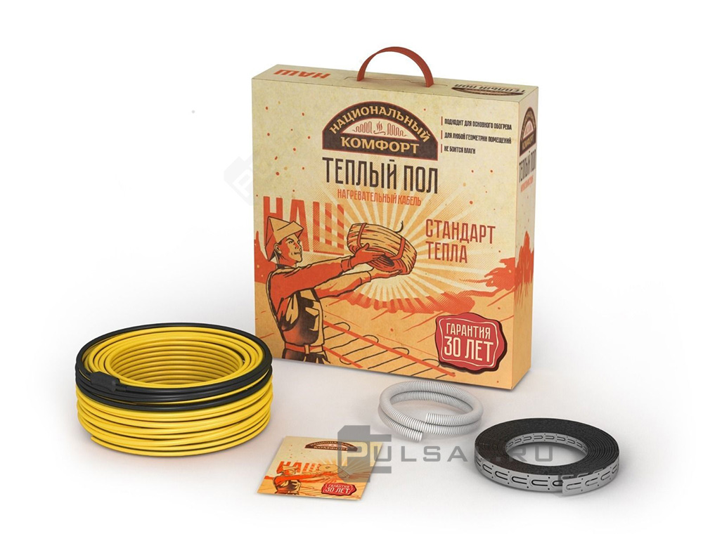 Нагревательный кабель с терморегулятором, Национальный комфорт БНК, длинна - 9 м., мощность - 75 Вт., под плитку, под ламинат и паркет, двужильный