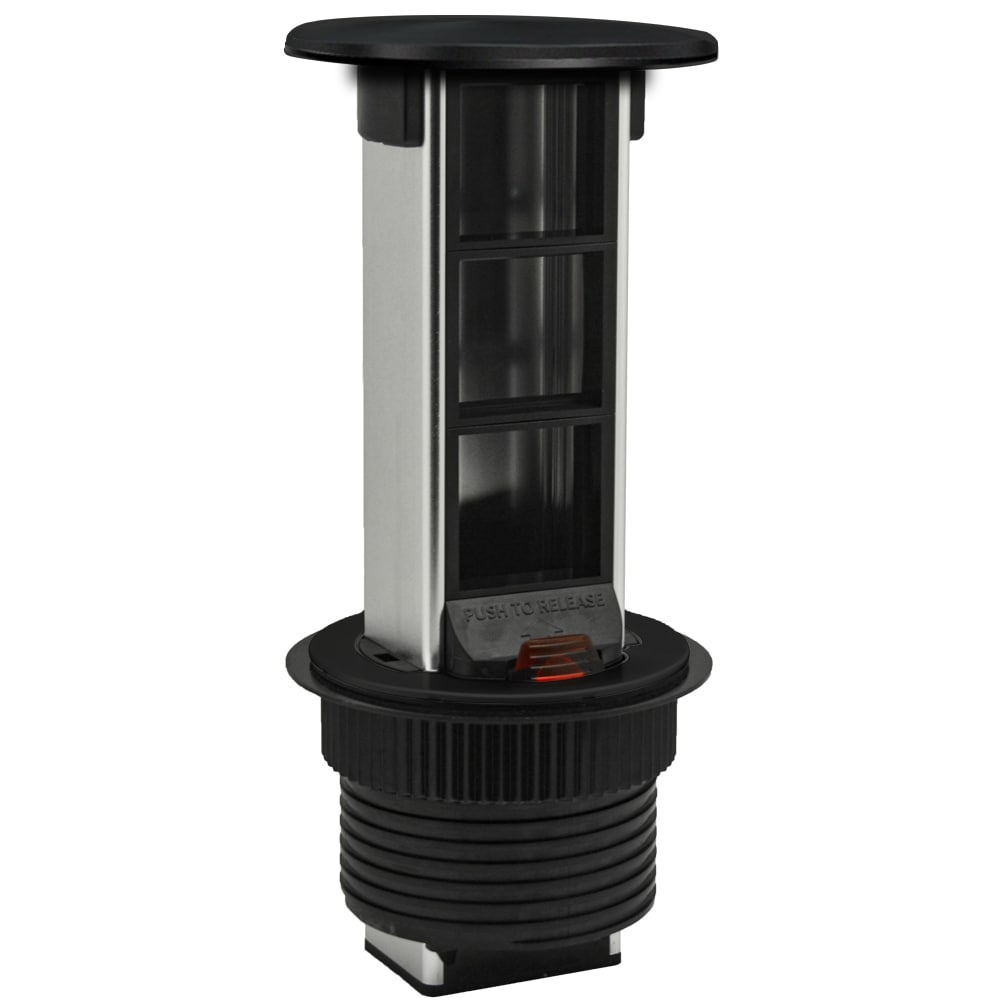 Настольный встраиваемый розеточный блок Static Лючки DDSB, для столов и мебели, 3 поста, 6 модулей, цвет - серебро