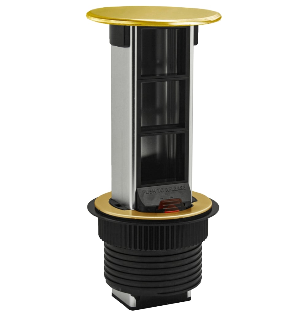 Встраиваемый выдвижной теле-блок Vertical Лючки DDSB, для столов и мебели, 3 поста, 6 модулей, цвет - латунь