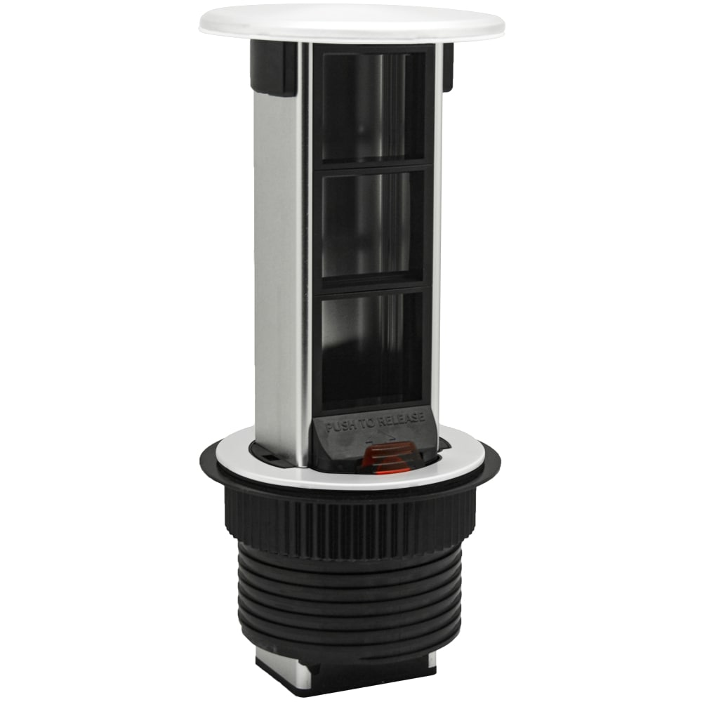Настольный встраиваемый розеточный блок Static Лючки DDSB, для столов и мебели, 3 поста, 6 модулей, цвет - серебро