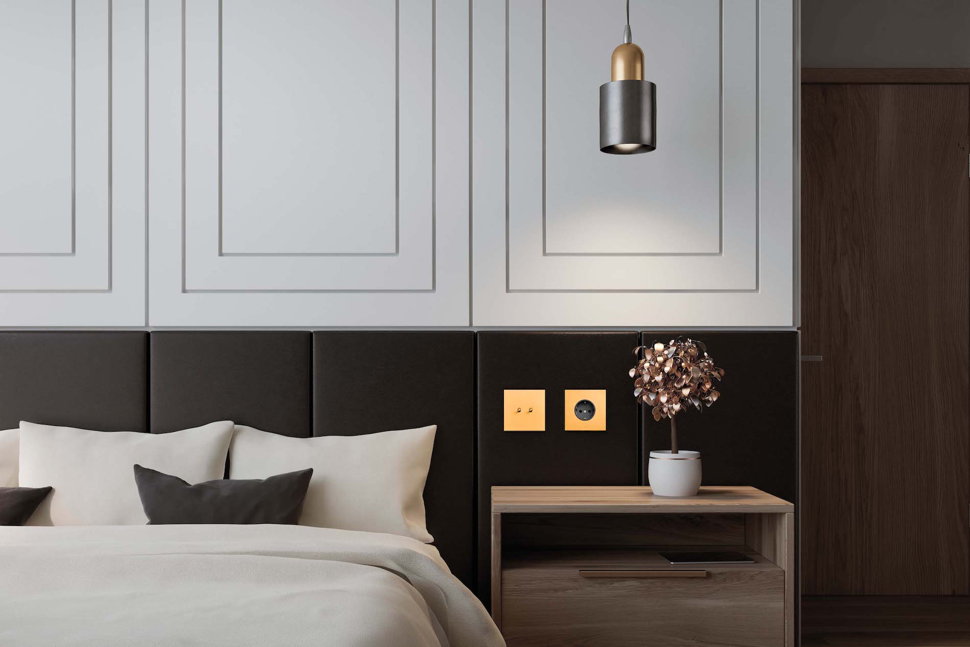 Серия тумблерных выключателей и розеток N96 премиум-класса — это современная интерпретация ретро-стиля. Дизайн этой серии передает классическую элегантность и изящество. Она станет изысканным дополнением классического интерьера: лицевые панели выполнены из стали, без видимых элементов крепления, а особая гордость – плавный ход механизмов и приятный тактильный отклик. Выбирая Donel N96, вы инвестируете в качество и элегантность, которые подчеркнут ваш безупречный вкус.