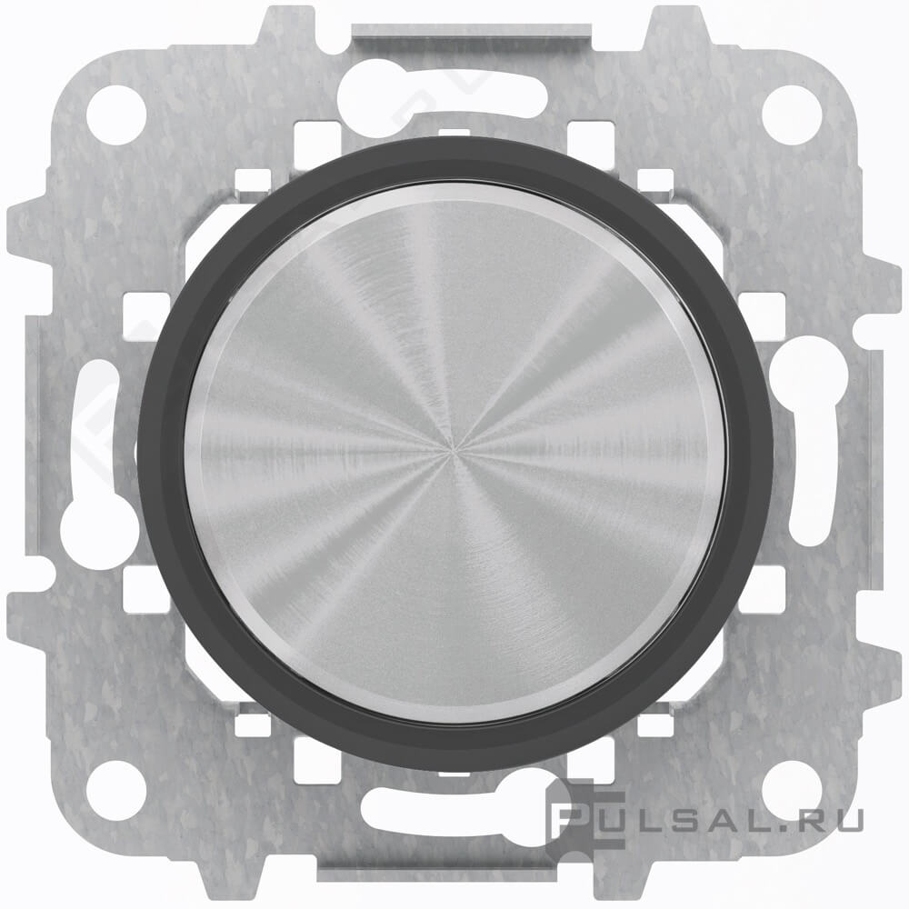 Светорегулятор (диммер) 60-500 Вт/ВА, кольцо "чёрное стекло" SKYmoon, поворотно-нажимной, с возможностью управления с 2-х мест, лампы накаливания и галогенные 220В (R), лампы с индукционным (обмоточным) трансформ.(L), лампы с электронным (емкостным) трансформ.(C), цвет - нержавеющая сталь, черное стекло