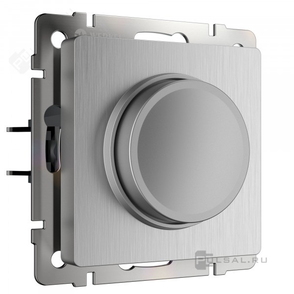 Светорегулятор (диммер) 600 Вт/ВА, для LED 200 Вт/ВА Alumax, Split, Slab, Senso, Baguette, Acrylic, Platinum, Elite, Snabb, Stream, Flock, Stark, Fiore, Favorit, Diamant, Aluminium, Antik, Metallic, поворотно-нажимной, лампы накаливания и галогенные 220В (R), лампы с электронным (емкостным) трансформ.(C), диммируемые лампы LED 220В (LEDi тип C), цвет - серебряный рифленый