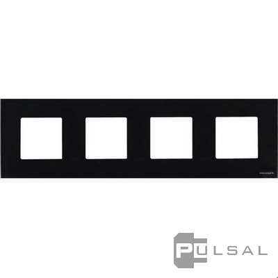 Рамка (итальянский стандарт) Zenit, 4 модуля, цвет - черное стекло, стекло