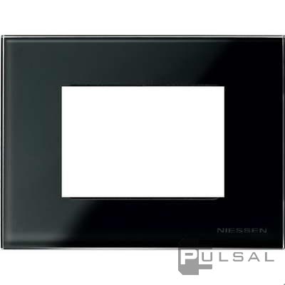Рамка (итальянский стандарт) Zenit, 3 модуля, цвет - черное стекло, стекло