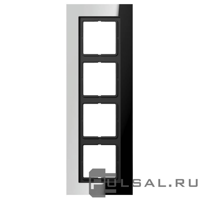 Рамка LS plus, 4 поста, цвет - хром, металл