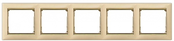 Рамка Valena, 5 постов, цвет - слоновая кость / золотой штрих, пластмасса