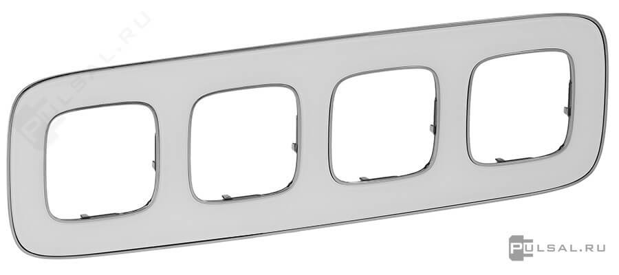 Рамка Valena Allure, 4 поста, цвет - белое зеркало, металл, стекло