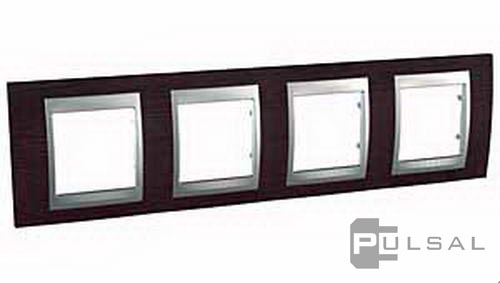 Рамка Unica Top, 4 поста, цвет - вишня, алюминий, дерево