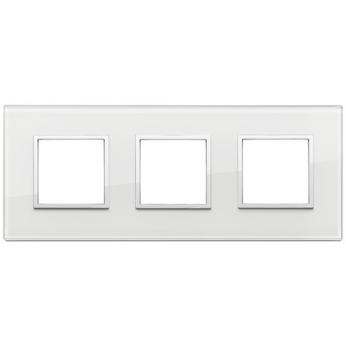 Рамка Eikon EVO, 3 модуля, цвет - белый бриллиант, хром, стекло