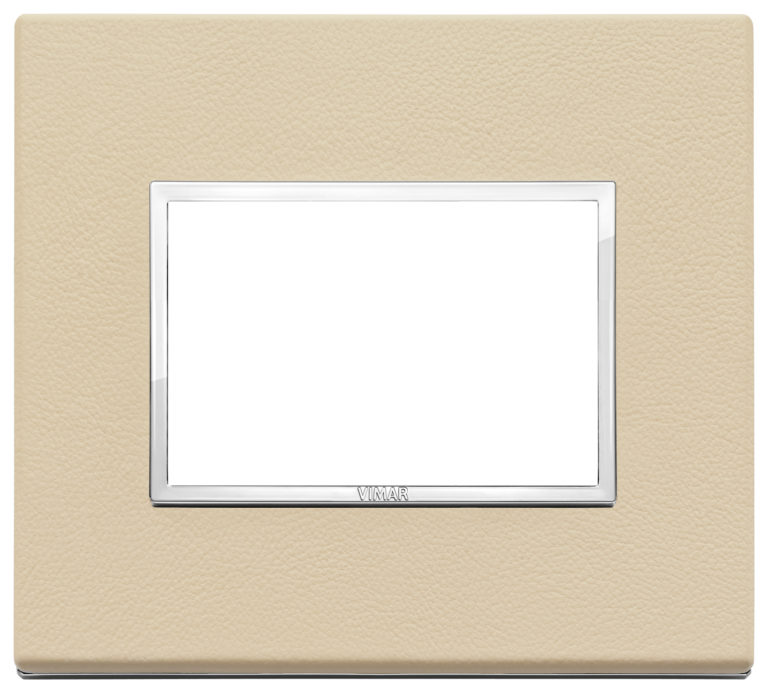Рамка Eikon EVO, 3 модуля, цвет - кожа кремовая, хром, кожа