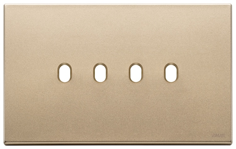 Рамка-накладка для тумблерного выключателя, на 4 механизма Eikon EXE Vintage, 4 модуля, цвет - золото, металл