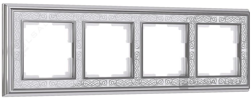 Рамкa Palacio, 4 поста, цвет - белый, хром, белый, металл