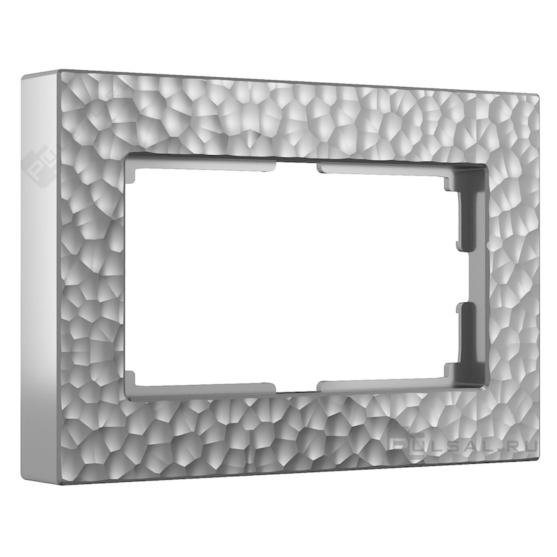 Рамка для двойной розетки Hammer, 2 поста без перегородки, цвет - серебряный, пластмасса