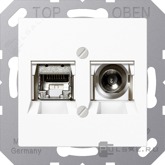 Механизм розетки акустической A VIVA, A creation, A flow, A 550, AS 500, CD 500, CD plus, LS 1912, LS 990, LS plus, LS ZERO, LS-design, SL 500, ECO profi и ECO profi Standart, ECO profi design (ECO Profi Deco), 2 пары, цвет - белый