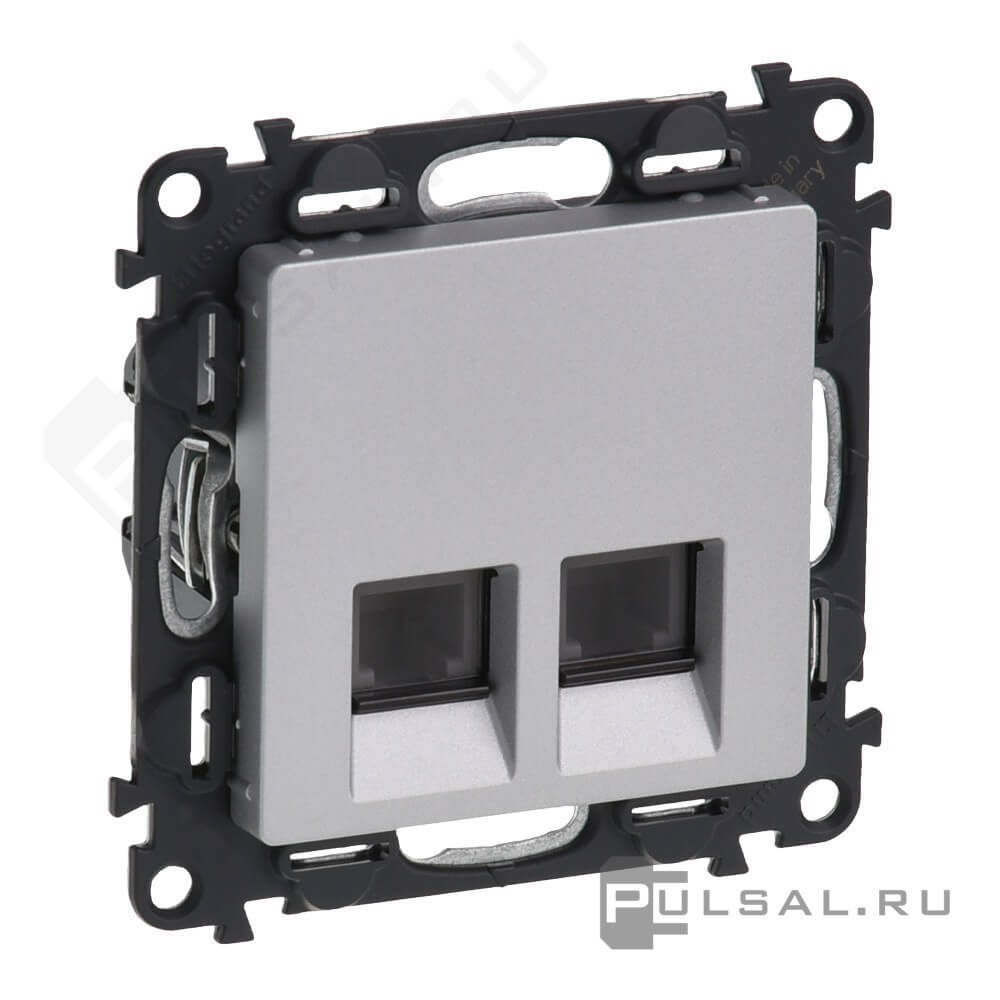 Розетка акустическая Valena Life, 2 пары, цвет - алюминий