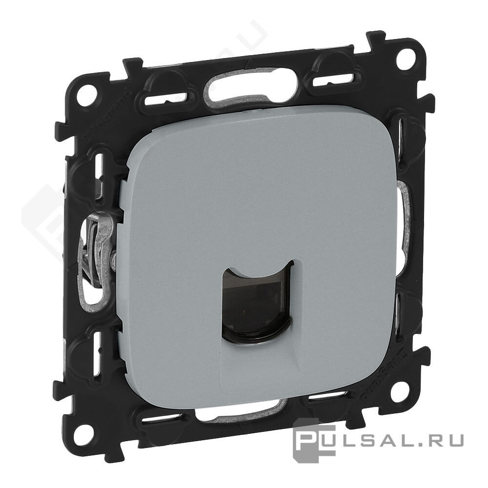 Розетка телефонная RJ11 Valena Allure, одинарная, цвет - алюминий